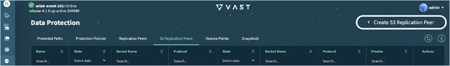 - Navigate to Data Protection > S3 Replication Peers.